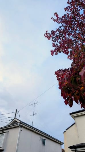 舞美しい紅葉のハナミズキと一緒に撮影された空の様子、ありがとうございます。曇り空で肌寒い朝の状況がよく分かり、予報精度向上に役立ちます。季節の移ろいを感じる素敵な一枚ですね。